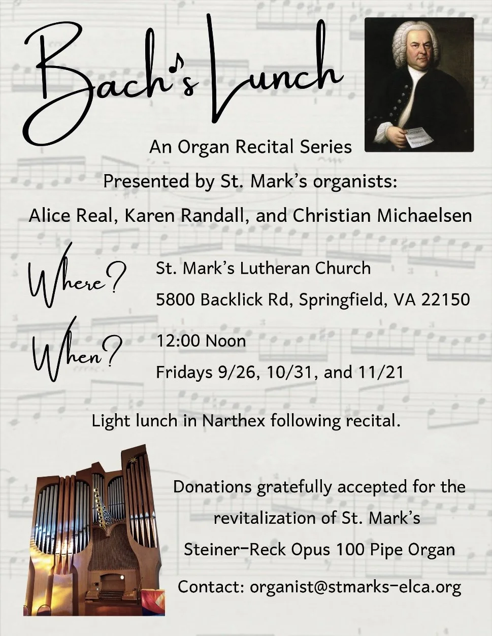 Have news to share with the congregation? Send it via email to communications@stmarks-elca.org to be published in the appropriate publication—E-Messenger, This Week, our website, and our Facebook page. Deadline is Tuesday at 5:00 PM, for same-week publishing.